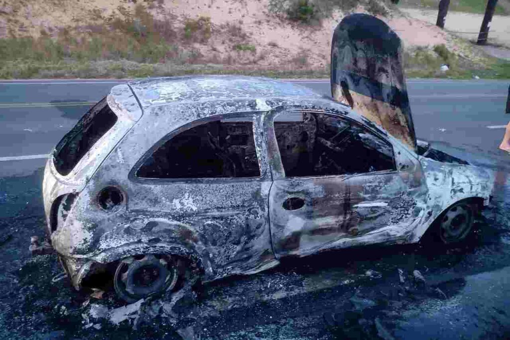 Carro é totalmente destruído por incêndio em Jaguaruna