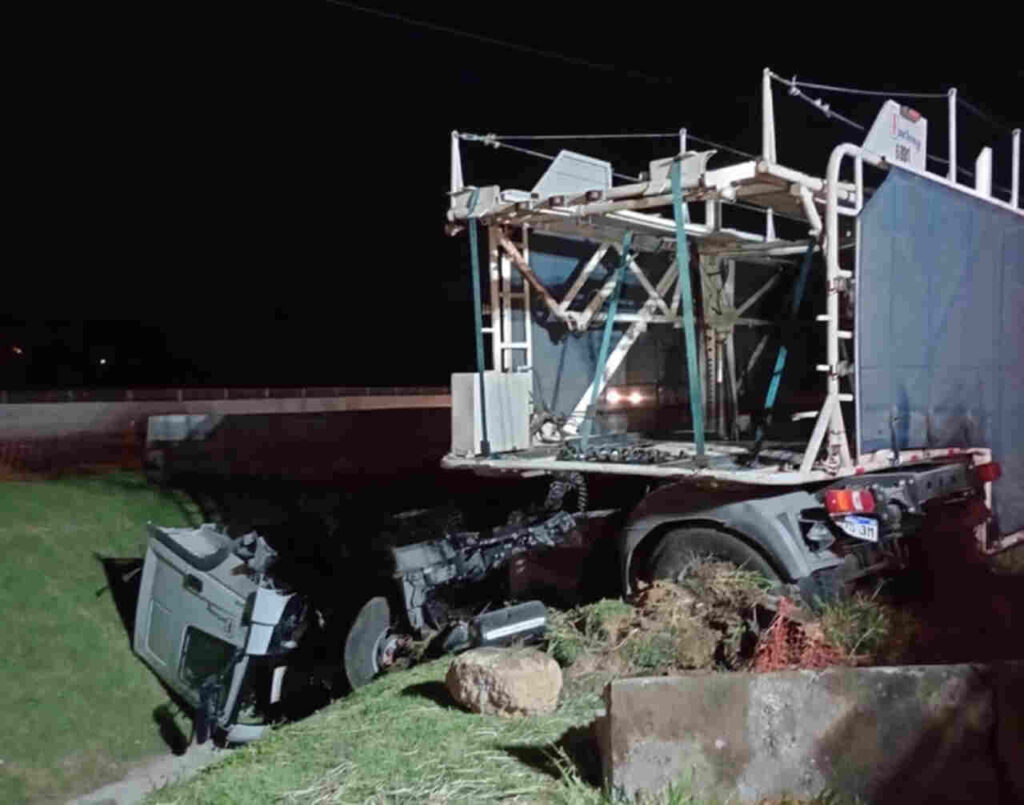 Motorista de carreta sai da pista em acidente na BR-101, após mal súbito, entre Tubarão e Capivari