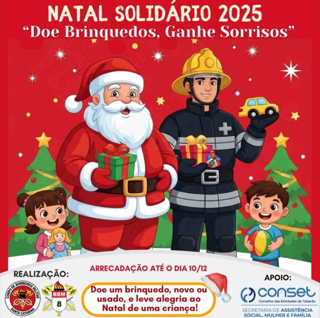 Tubarão apoia campanha do Corpo de Bombeiros “Natal Solidário 2025 – Doe Brinquedos, Ganhe Sorrisos”