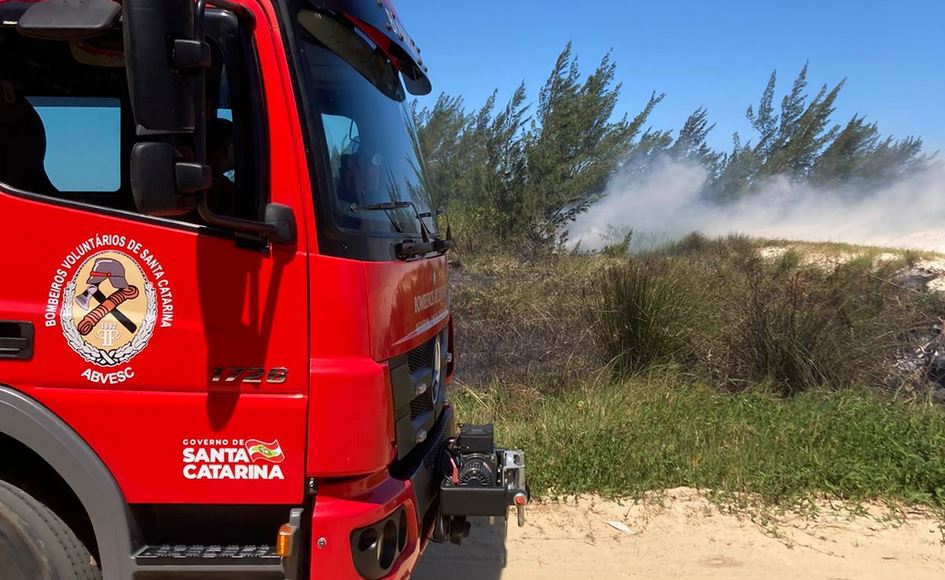 Bombeiros combatem incêndios em vegetação em Jaguaruna e Laguna