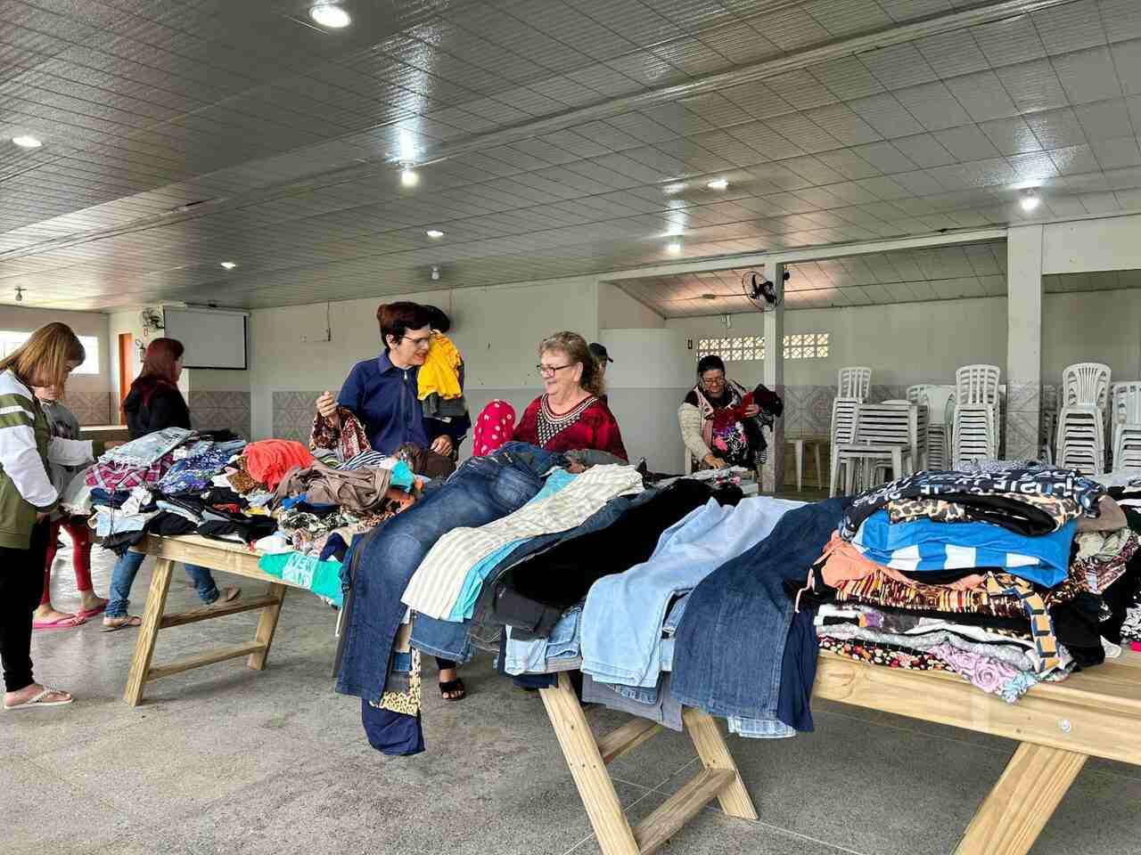 A Fundação Irmã Vera realizou, na última quinta-feira (9), mais uma edição do Brechó Solidário, desta vez na comunidade da Caputera, em Laguna. A ação contou com ampla participação dos moradores e mais de 500 peças de roupas, calçados e acessórios foram distribuídas gratuitamente às famílias da localidade.