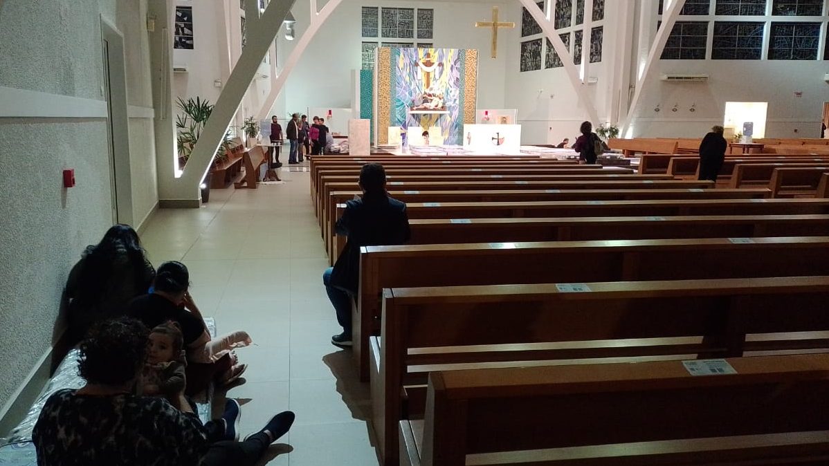 A Catedral de Tubarão abriu suas portas pela tarde, e cerca de 50 pessoas estão abrigadas na Igreja Mãe do município. Em um ano, é a segunda vez que a Catedral recebe desalojados ou desabrigados.