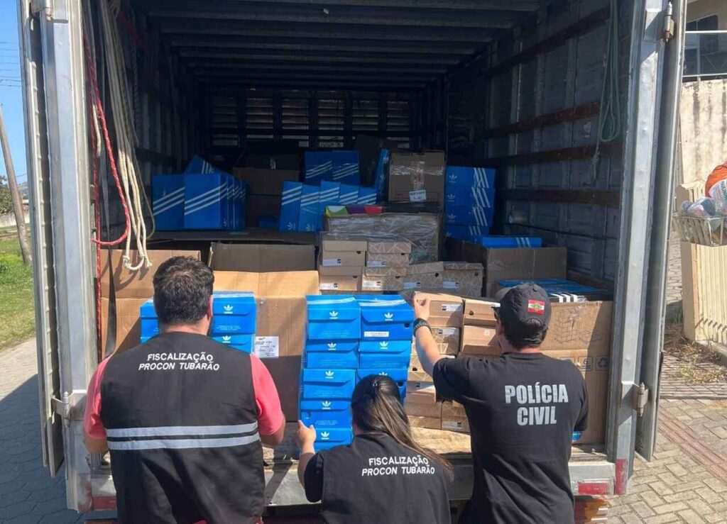 Polícia Civil e Procon de Tubarão apreendem mais de 800 tênis com indícios de falsificacão