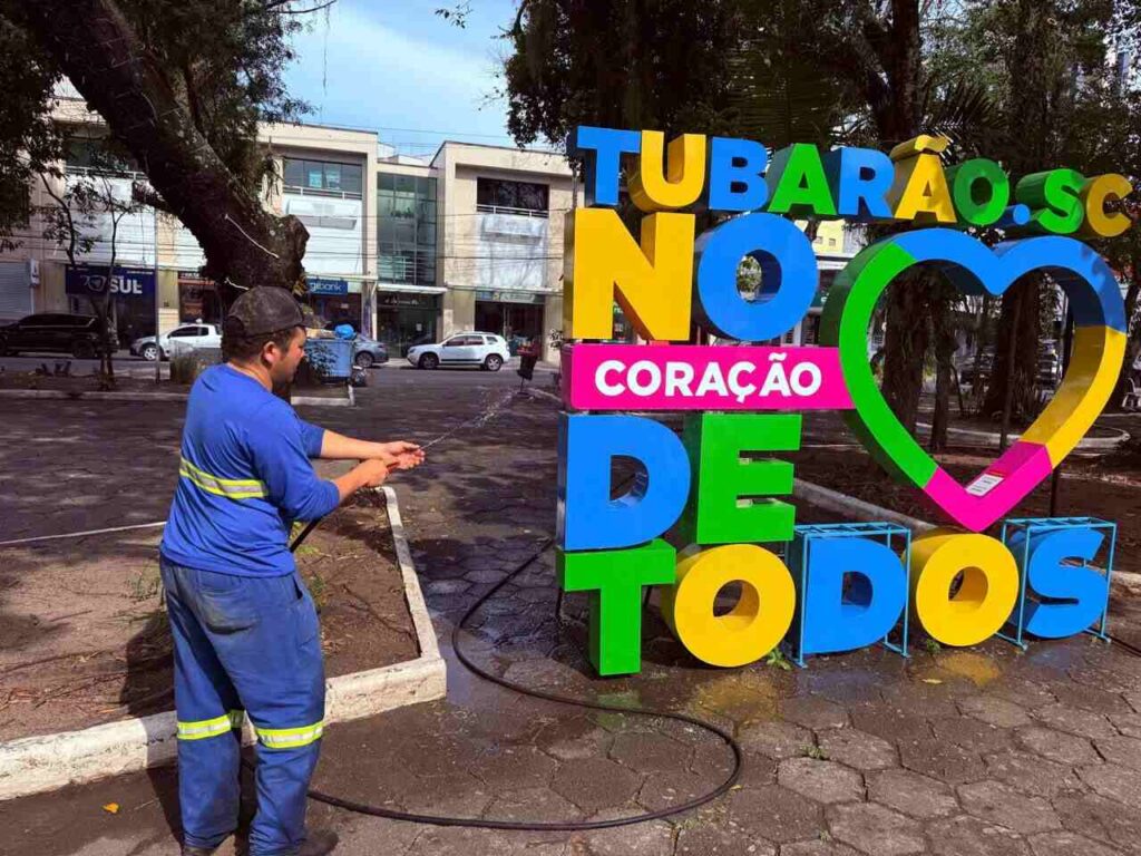 Tubarão: ponte do Andrino e Praça Sete são higienizados pela Secretaria de Serviços Públicos e Zeladoria