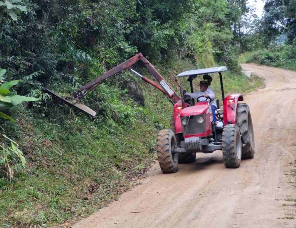 Estrada geral de Alto Pedrinhas, em Tubarão, recebe serviço de roçagem