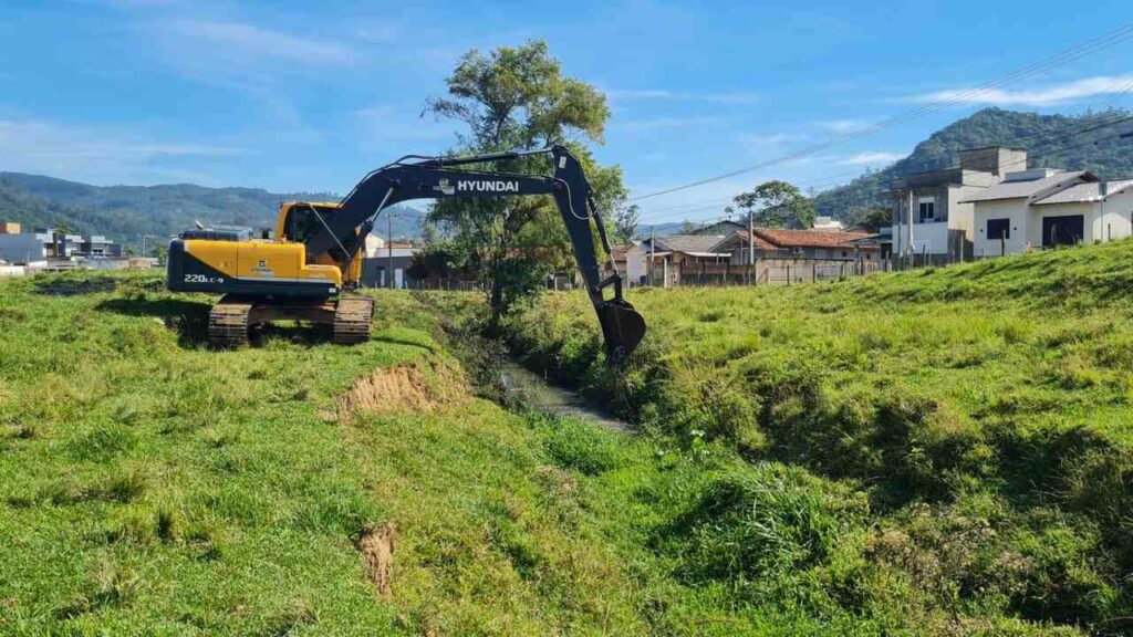 Trabalho conjunto entre secretarias realiza limpeza de córrego no bairro Bom Pastor, em Tubarão