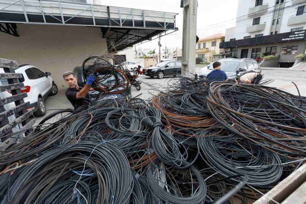 Nova operação para retirada de fios obsoletos recolhe cerca de 20 mil metros de material na Altamiro Guimarães