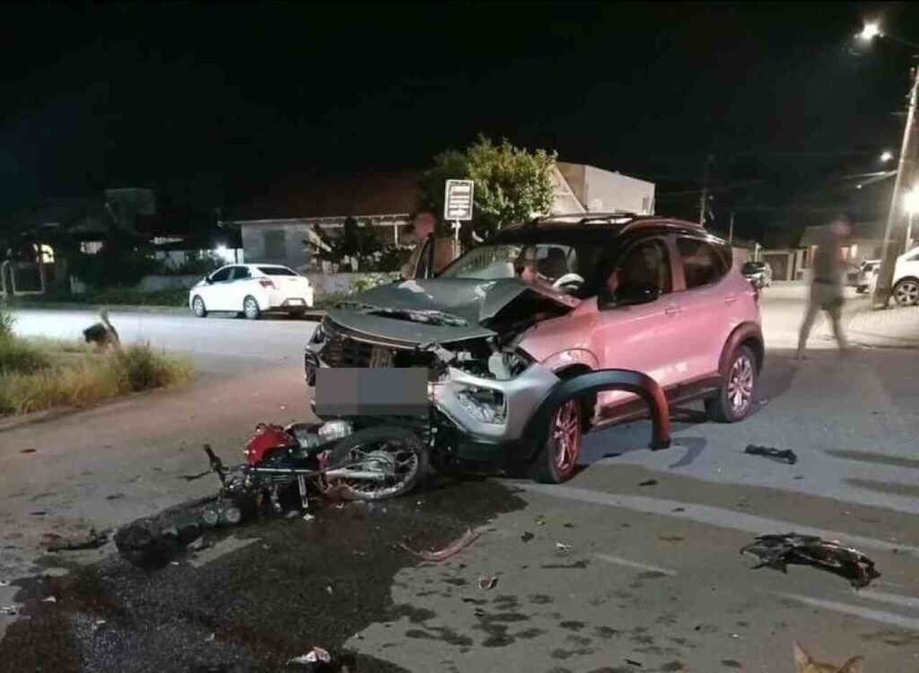 Mulher sofre ferimentos após acidente entre carro e moto em Treze de Maio