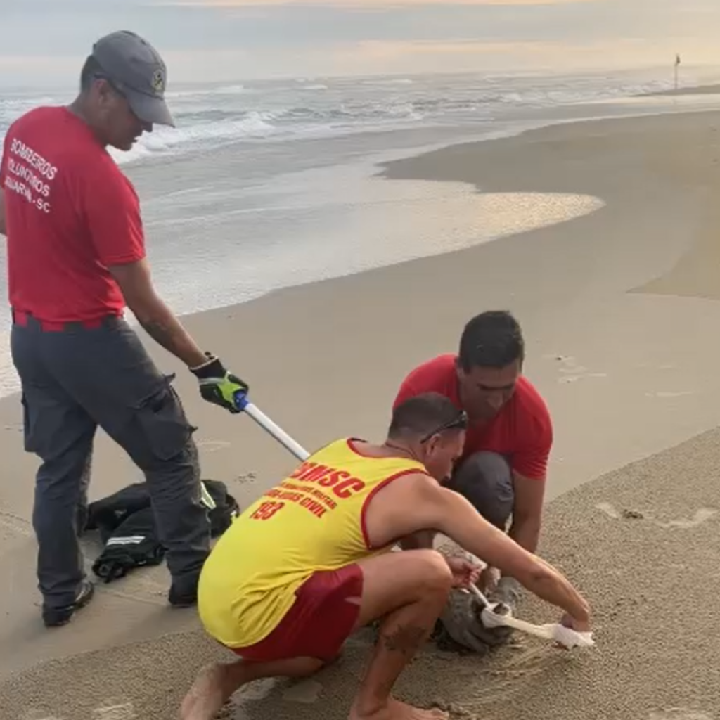 A captura foi registrada por um dos banhistas.