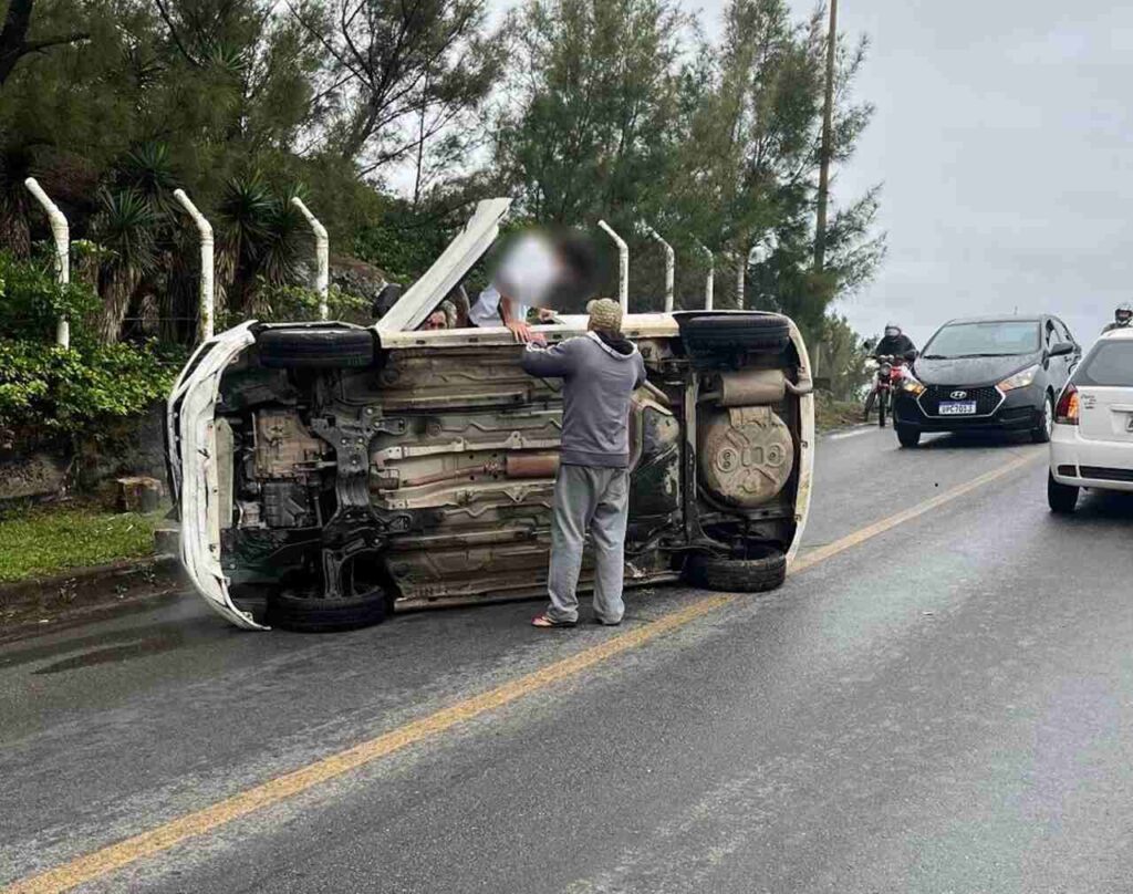 Veículo tomba nas curvas do Iró, em Laguna