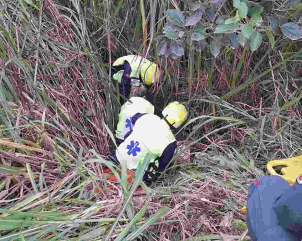 Motociclista cai em barranco após colisão com caminhonete na SC-370