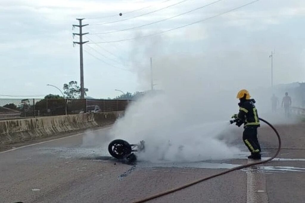 Homem fica ferido após sofrer acidente e moto pegar fogo em Tubarão