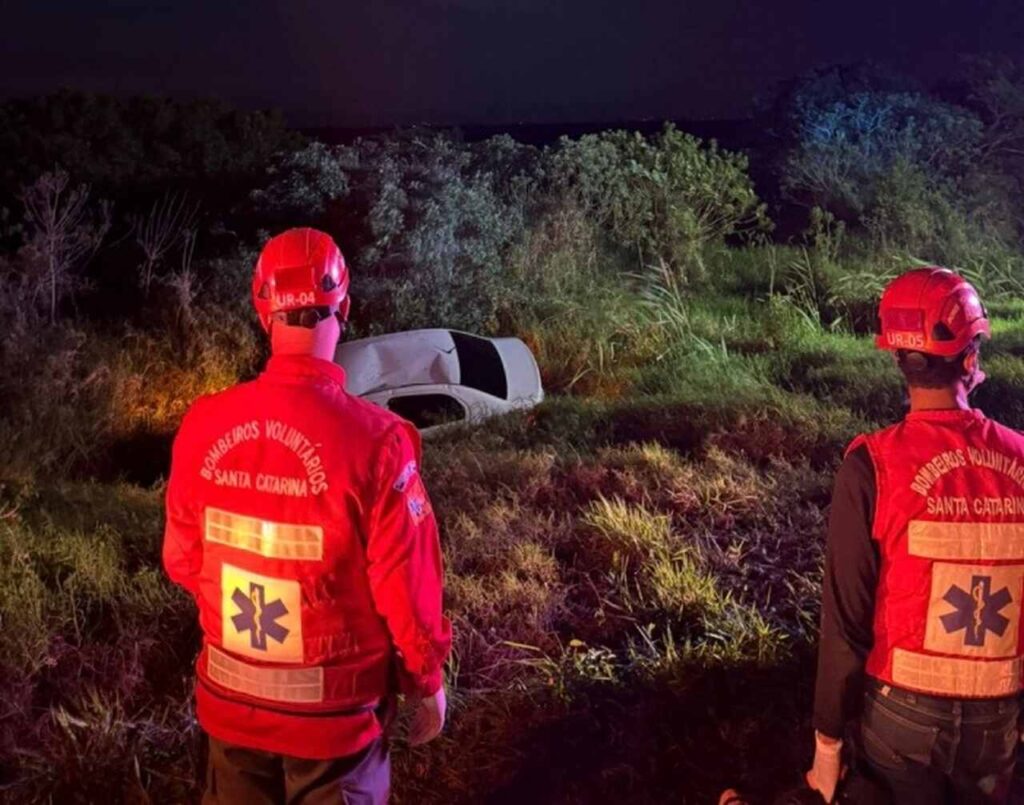Carro sai de pista e cai em vala na Cigana, em Laguna