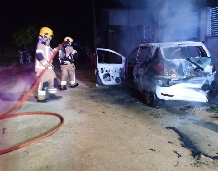 Carro é destruído após pegar fogo em Jaguaruna