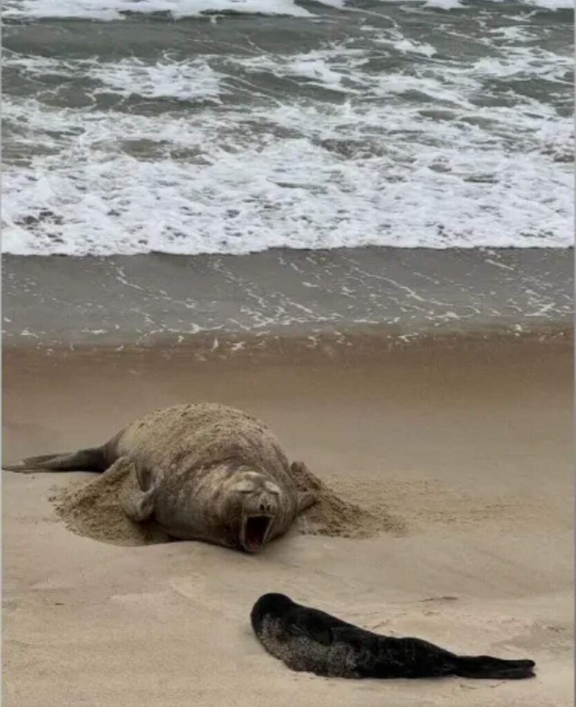 Evento inédito: elefante-marinho dá à luz em praia de Garopaba