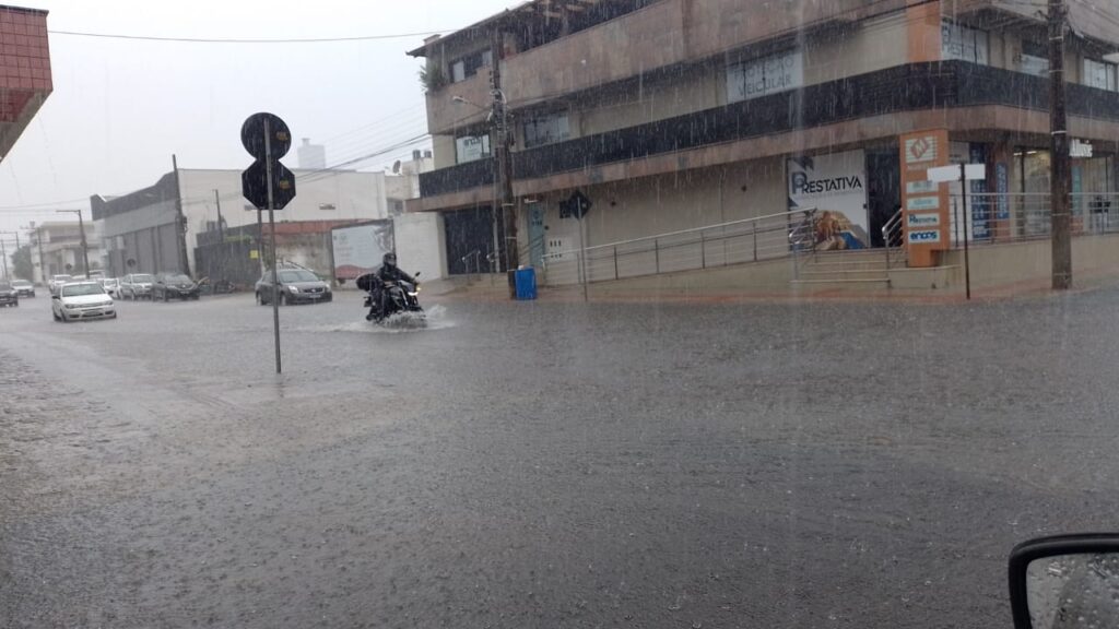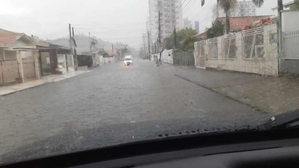 Várias ruas de Tubarão registraram pontos de alagamento na tarde desta terça-feira (24), por causa do alto volume de chuva no município.