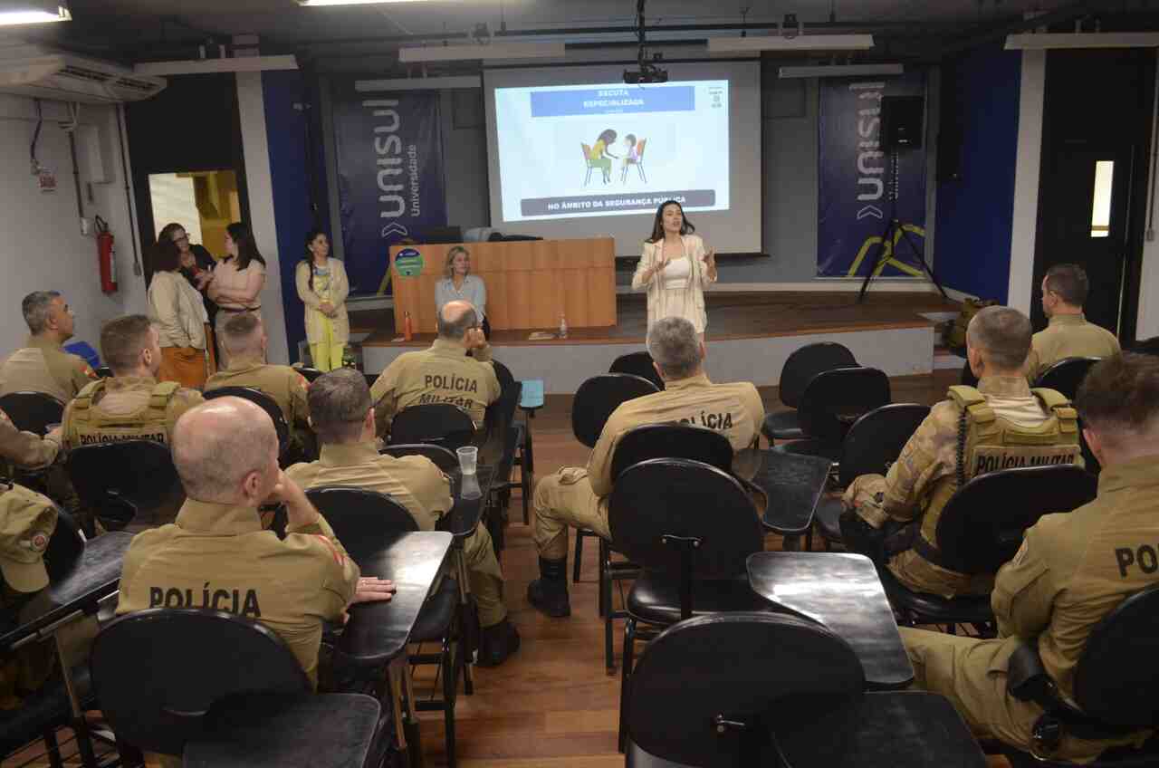O Comitê da Escuta Especializada, formado por diversos órgãos e entidades como as secretarias municipais de Saúde e Desenvolvimento Social, a Fundação Municipal de Educação e o Conselho Tutelar, iniciou nesta terça-feira (15), no auditório do Bloco Pedagógico da Unisul, uma capacitação junto à Polícia Militar. Nesta quarta-feira (16), uma nova turma de policiais militares fecha o ciclo de capacitação do tema.