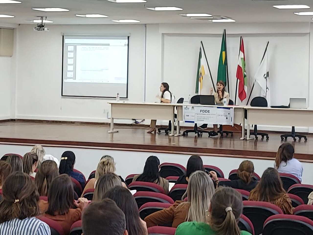 A formação aconteceu das 8h30 às 17h, no auditório do Bloco II da Universidade do Estado de Santa Catarina (Udesc), no bairro Progresso, e reuniu gestores, professores, membros de conselhos escolares e representantes das unidades executoras das redes públicas de ensino de diversos municípios da região Sul de Santa Catarina.