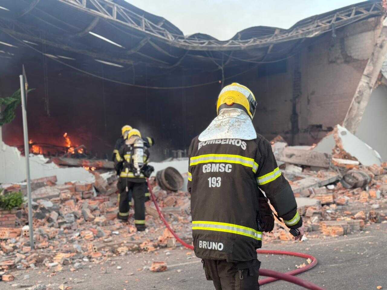 Fogo mobilizou bombeiros de cinco municípios e consumiu cerca de 700 metros quadrados do estabelecimento