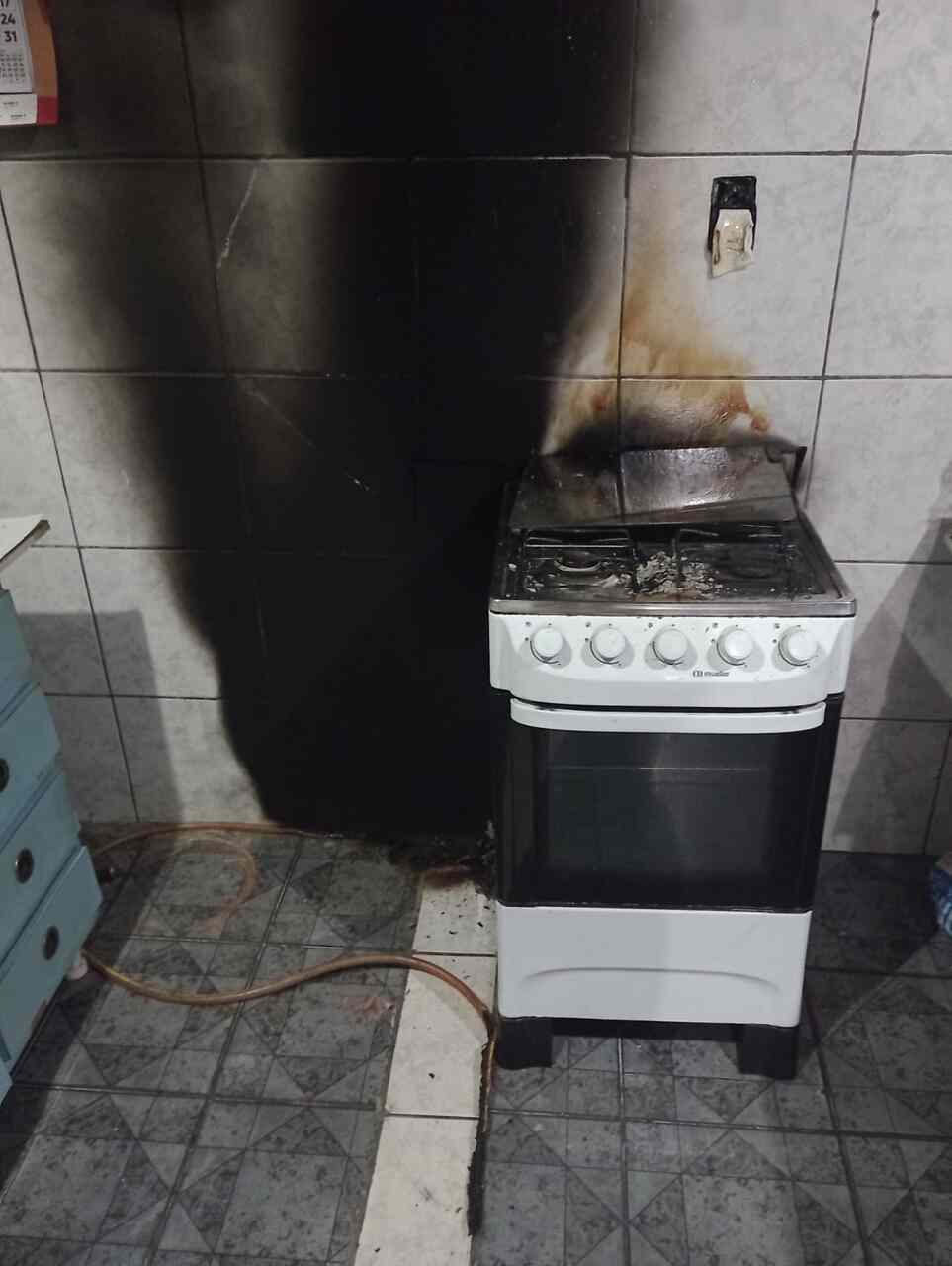 Eletrodomésticos: o fogão foi completamente atingido pelo fogo.