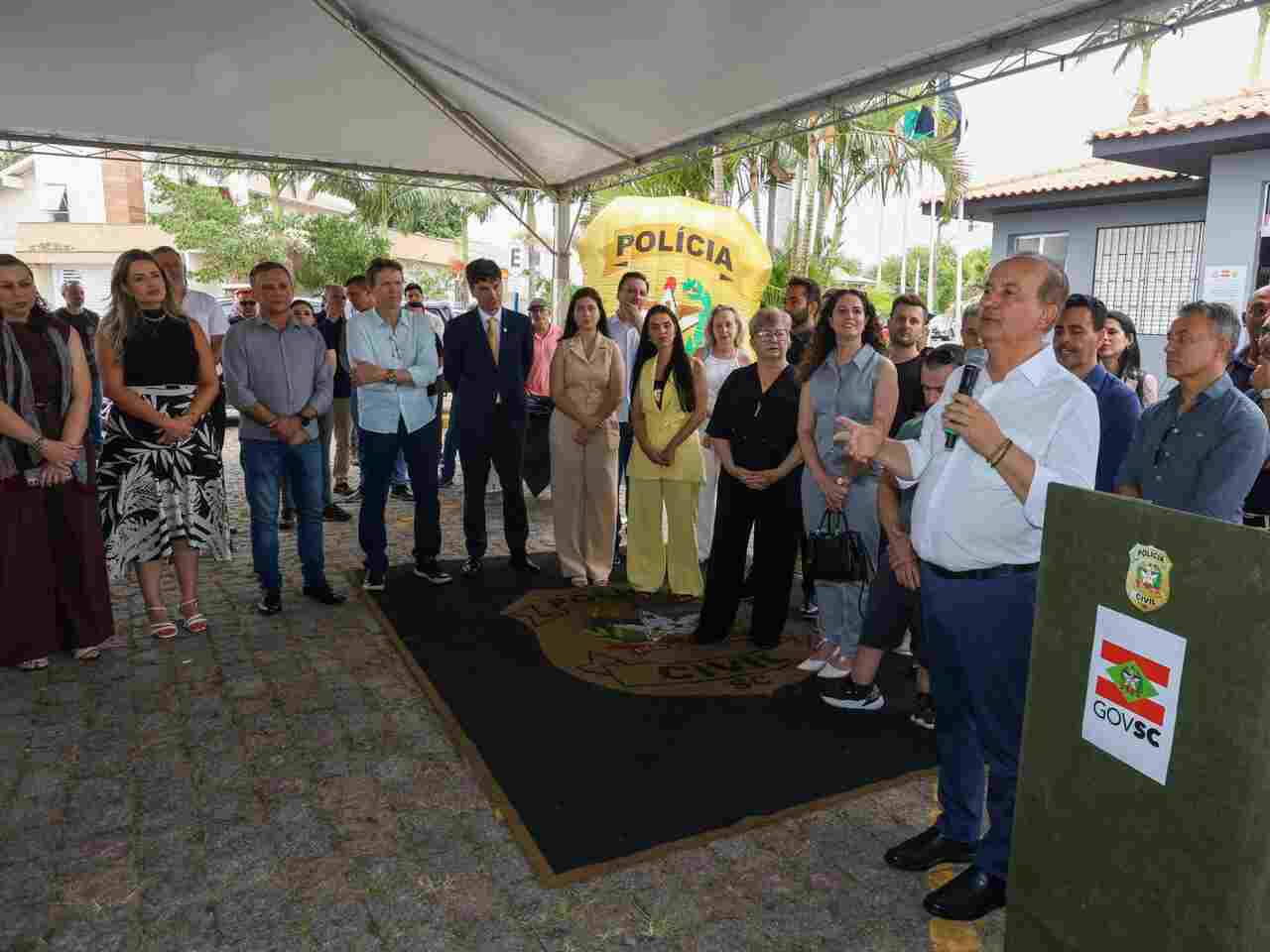 “Resolvemos passar Santa Catarina a limpo, então não tem área que a gente não esteja arrumando, melhorando. Para quê? Para dar conforto para as pessoas. As pessoas precisam ser bem atendidas. Aqui a nossa Polícia Civil, que é administrada pelo nosso delegado-geral Ulisses, é um bom exemplo em Santa Catarina. Nós estamos entregando viatura boa, viatura nova, Sala Lilás. Estamos reformando todas as delegacias para ficar agradável para dar conforto para as pessoas, fazendo sala para atender especialmente as mulheres para quando precisa de um atendimento especial na delegacia”, explicou o governador Jorginho Mello.