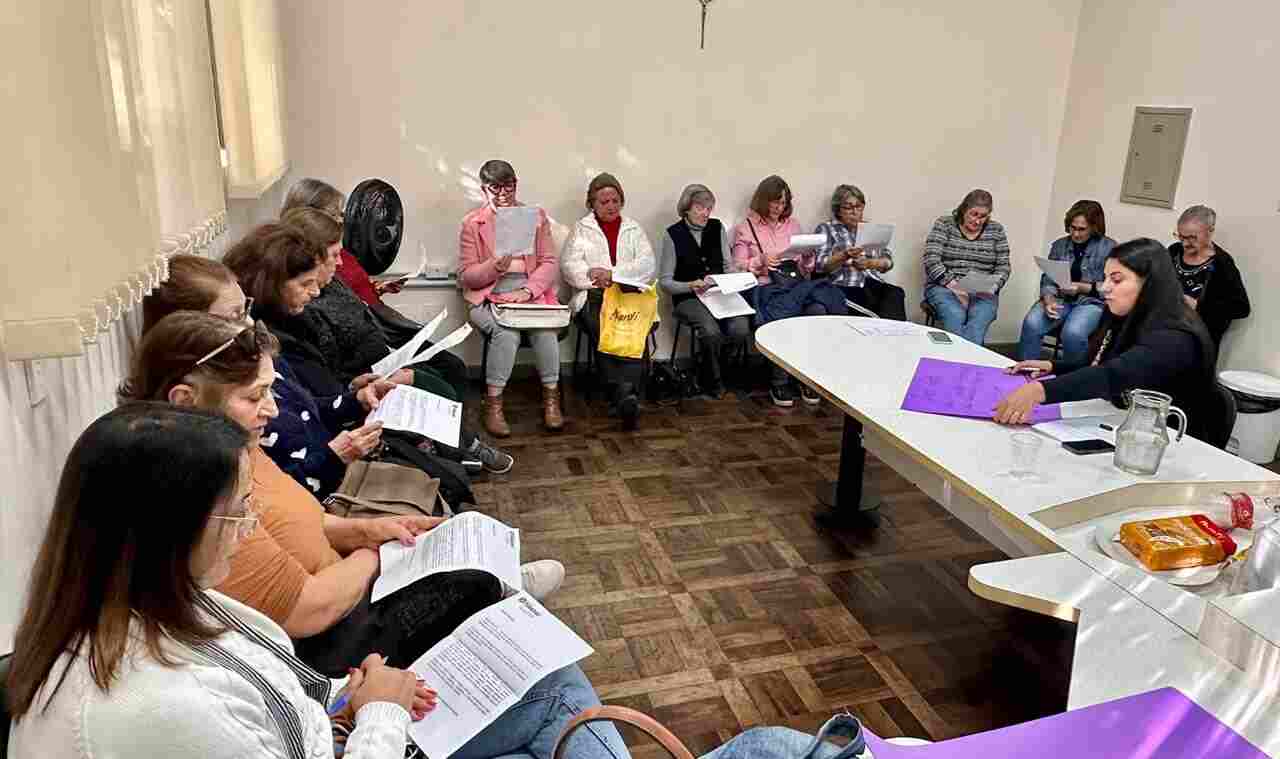 Em uma reunião para instrução e debate com as monitoras do Programa Mulheres em Ação, na tarde desta segunda-feira (02), na sala de reuniões da Secretaria de Assistência Social, Mulher e Família, a coordenadora do Setor Grupos, Kátia Bressan, fez a abertura da programação do Junho Violeta.