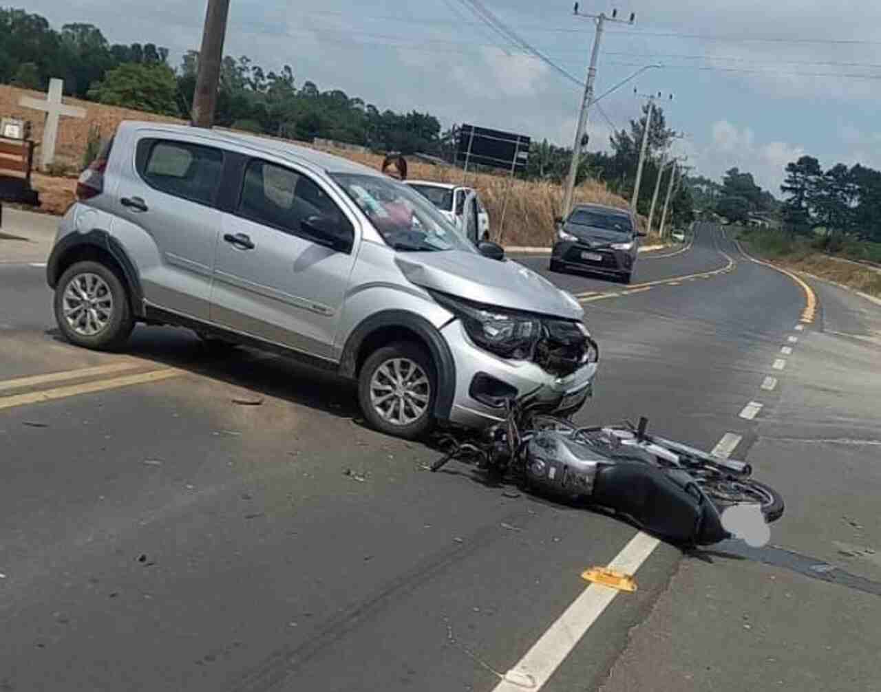 Um grave acidente de trânsito deixou um motociclista de 23 anos ferido na manhã desta segunda-feira (3), no bairro Esperança, em Içara. A moto que ele pilotava, uma Honda CG 150, colidiu com um Fiat Mobi.