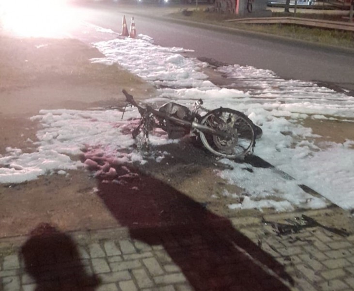 A moto acabou pegando fogo após a colisão