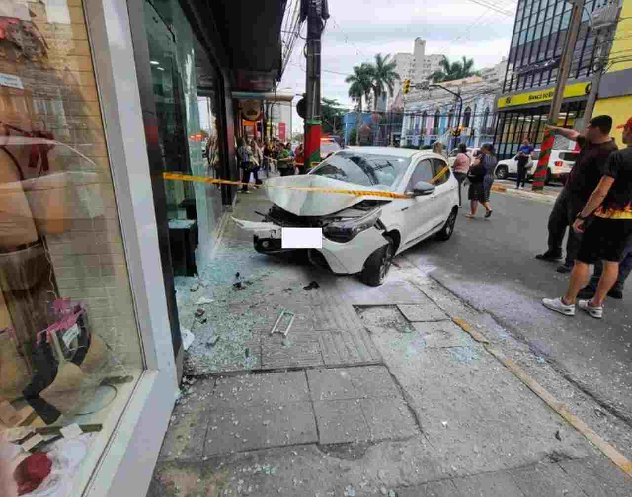 Uma motorista acabou perdendo o controle do seu carro e atingiu uma vidraça de uma loja no Centro de Tubarão durante essa quarta-feira (4).