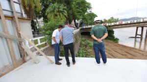 Nesta quinta-feira (26), o prefeito Estêner Soratto e o vice Denis Matiola vistoriaram as obras de reforma e restauração do deck do casario da beira-rio, na região central da cidade, junto a uma comitiva formada por representantes do Conselho de Entidades de Tubarão (CONSET), do secretário municipal de Planejamento e Urbanismo, Felipe Nascimento, e do secretário adjunto da pasta, Elom Alano.