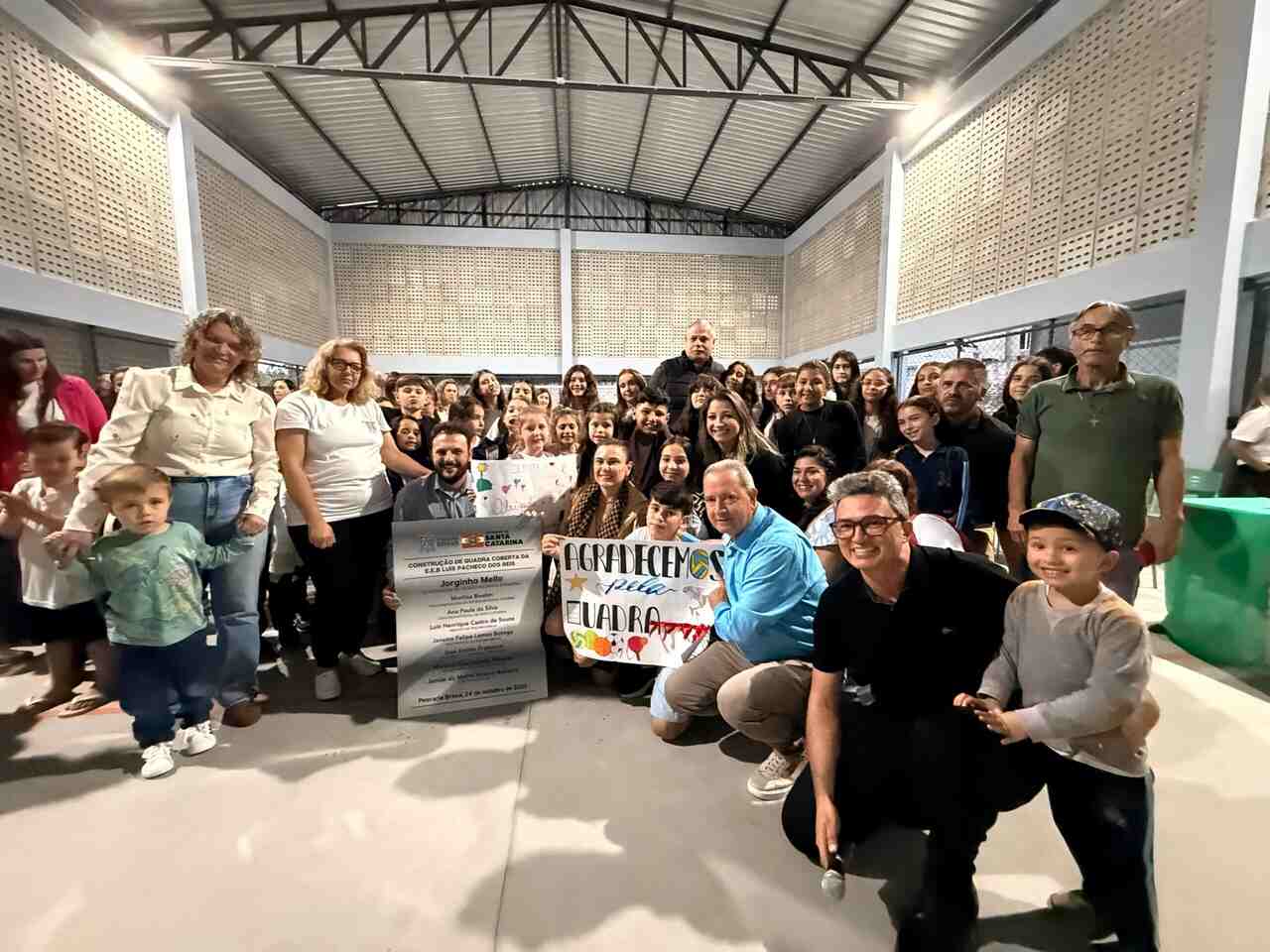 A Prefeitura Municipal de Pescaria Brava inaugurou, nessa quarta-feira (24), a quadra coberta da Escola Luís Pacheco dos Reis, no bairro Barreiros, a nova estrutura representa um marco para a comunidade escolar, oferecendo um espaço adequado, seguro e multifuncional para atividades esportivas, culturais e recreativas.
