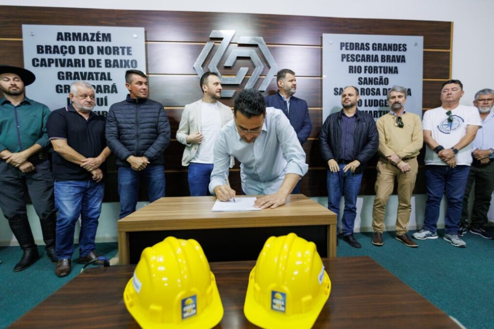 O prefeito Estêner Soratto assinou, nesta sexta-feira (26), a ordem de serviço que autoriza o início da pavimentação da Rua Doze de Outubro, no bairro Passo do Gado. A obra integra o programa Obra Pra Valer e representa um investimento de R$ 537.244,09, com prazo de execução de quatro meses. A empresa responsável pelos trabalhos será a Pavimentadora Alfa Ltda., vencedora da licitação.
