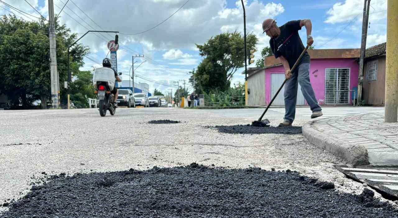 Agora o trabalho é retomado, novamente pelo Centro, e também Vila Moema e região da Passagem e Andrino. Na próxima semana a secretaria vai ampliar essa operação para outras áreas e com apoio de uma máquina rolo compressor e o uso de asfalto quente.