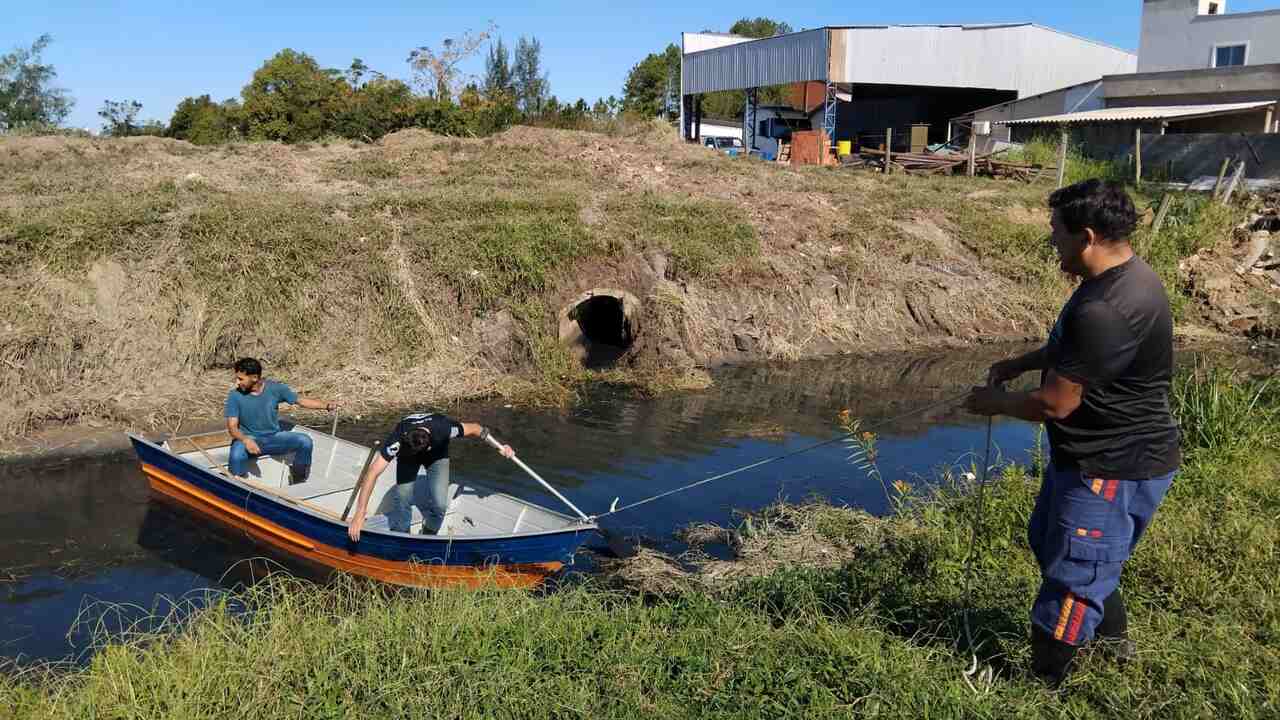 A Prefeitura de Tubarão, por meio da Secretaria de Proteção e Defesa Civil, deu continuidade nessa quarta-feira (30) à limpeza de uma vala no bairro São Bernardo, com atuação na margem da rodovia SC-370. As equipes utilizaram uma pequena embarcação para facilitar o acesso aos trechos mais difíceis e garantir a efetividade do serviço.