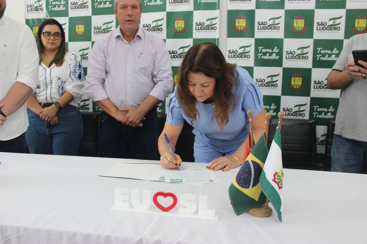 A presidente da Câmara de Vereadores de São Ludgero, Maria Marlene Schlickmann, recebeu do prefeito Ibaneis Lembeck, para assumir o comando do município. O ato de transmissão de cargo aconteceu no Auditório Municipal na terça-feira (5).