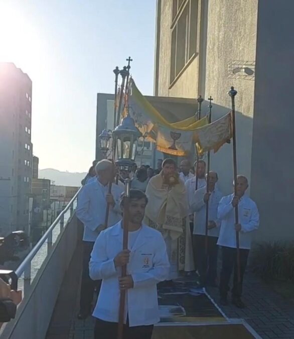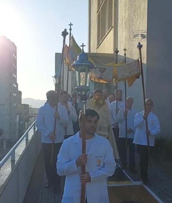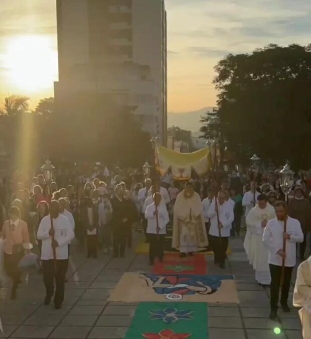 “A festa de Corpus Christi surge a partir do milagre eucarístico de Bozena e começa-se então a procissão de Corpus Christi naquele local. Havia também alguns indícios na Holanda de procissões com o Corpo de Cristo. Então, em 1264, com o Papa Urbano IV, foi publicado uma bula chamada ‘Transiturus de hoc Mundo’, em que se nota a instituição desse dia de Corpus Christi, para que toda a igreja celebrasse, de fato, enfeitando as ruas com o Corpo de Cristo, levando em procissão aquele que é o centro da nossa fé, o nosso Deus, aquele que está no meio de nós, no corpo, na espécie do Corpo e Sangue de Cristo, nas espécies do pão e do vinho”, explica o vigário paroquial da Catedral, padre Matheus Scremin.