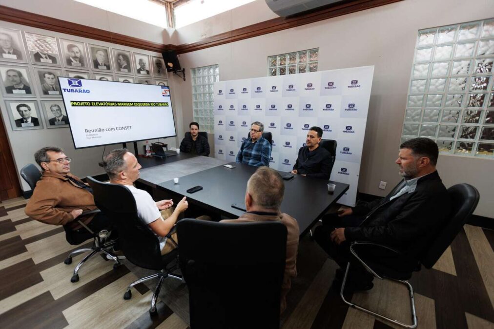 A Secretaria de Proteção e Defesa Civil de Tubarão realizou, nesta quinta-feira (25), mais uma reunião com representantes do Conselho das Entidades de Tubarão (CONSET), na Sala de Atos da Prefeitura. O encontro contou com a presença do prefeito Estêner Soratto, do vice Denis Matiola e do secretário Rafael Marques.