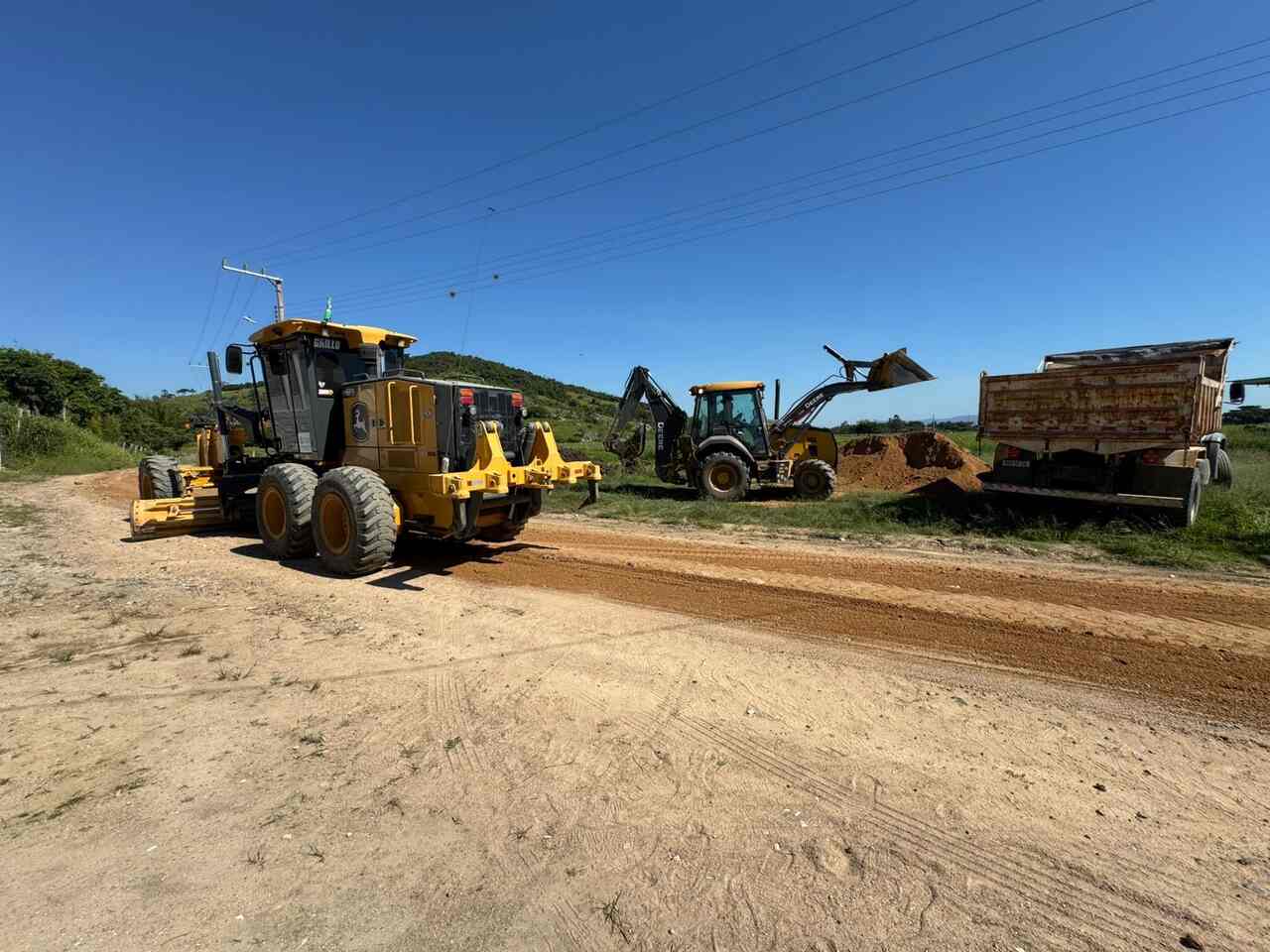 As equipes realizam trabalhos de patrolamento e lastreamento com areão nos trechos mais críticos das vias, assim como abertura de desaguadores, melhorando as condições de tráfego nas estradas rurais.