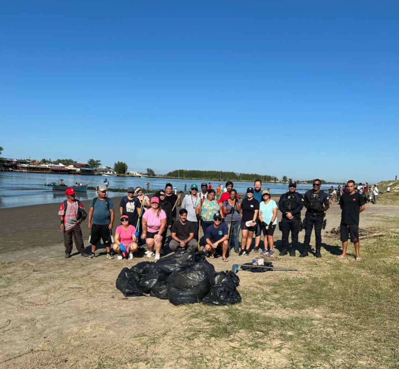 Entre os resíduos recolhidos em maior quantidade estão bitucas de cigarro, lacres de plástico, garrafas de vidro e garrafas pet. Na mesma ocasião também foi feita a poda de mato próximo ao ponto de observação da pesca com auxílio dos botos, assim como a colocação dos bancos para os pescadores.