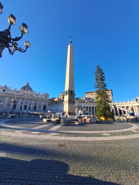 A Praça São Pedro, no Vaticano, já está com sendo fotografada por milhares de turistas e religiosos. A árvore de Natal já foi erguida na praça na última sexta-feira (22).