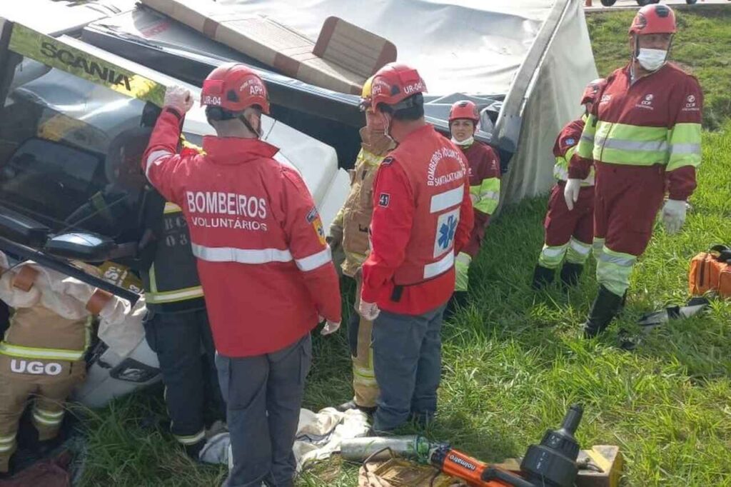 Caminhoneiro fica ferido após acidente em Sangão