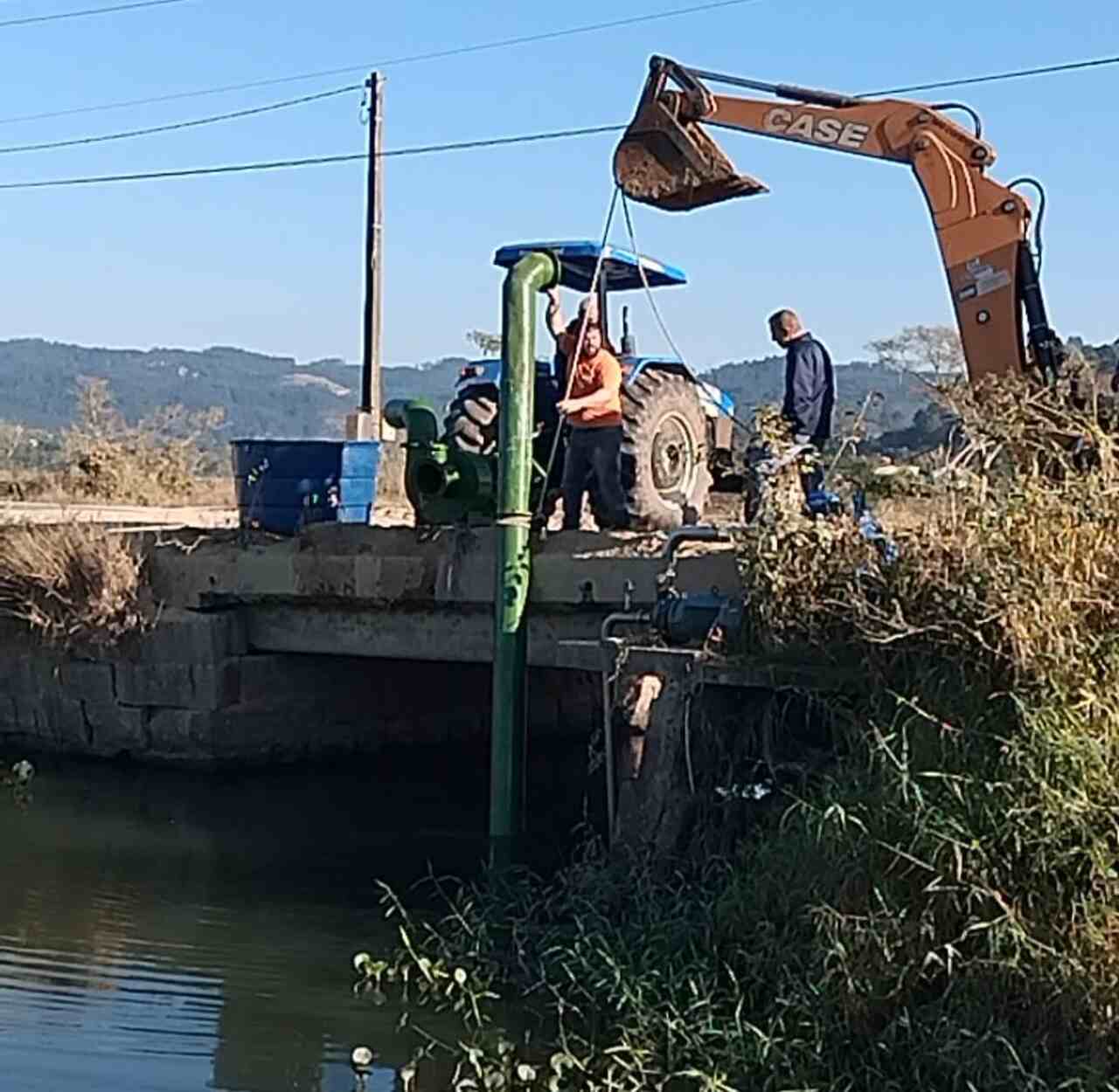 A bomba principal, elétrica, será retirada para serviços de manutenção. O equipamento testado é do tipo mecanizado, ou seja, possui acionamento ou motorização por um trator.
