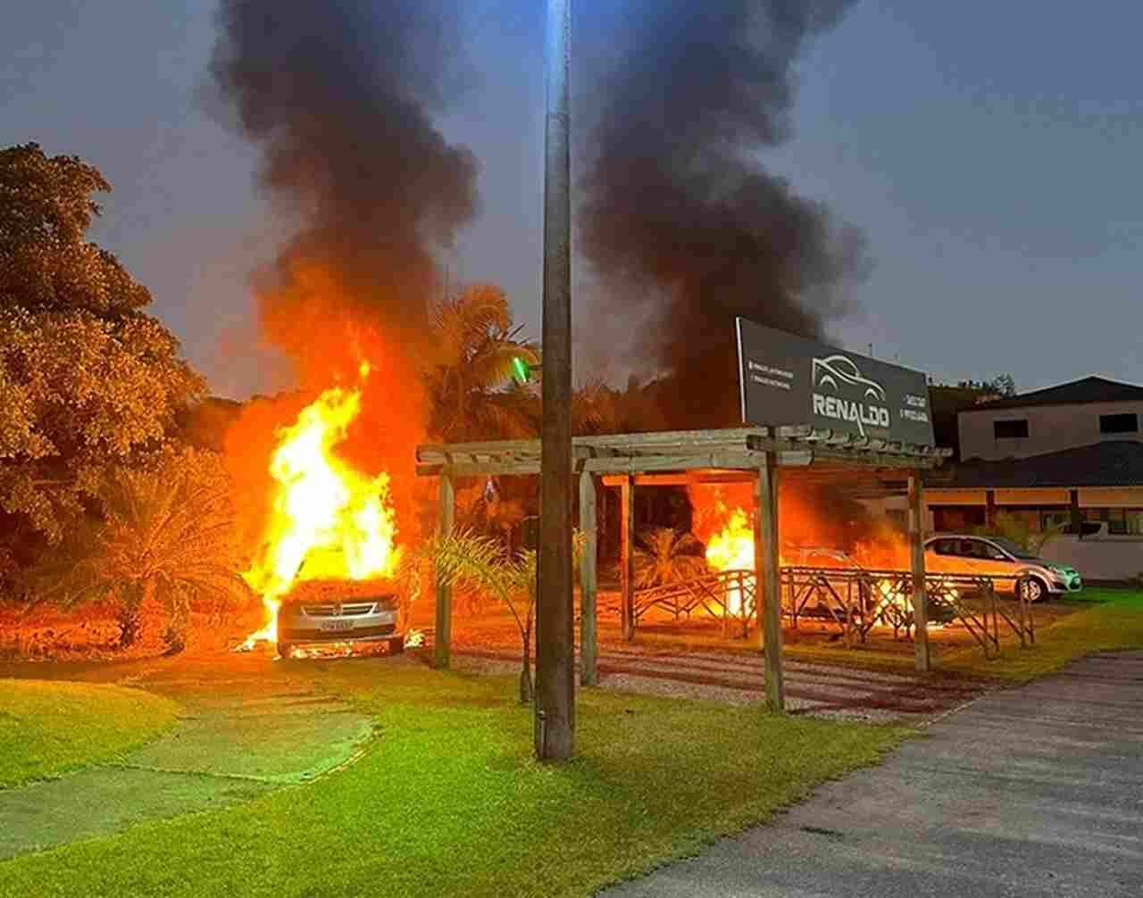 De acordo com a Polícia Militar (PM), o fogo destruiu dois veículos. O Corpo de Bombeiros foi acionado para combater as chamas. O proprietário da revenda apresentou algumas imagens à PM, que registraram um motociclista chegando para cometer o crime.